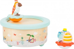 Hracia skrinka so slonom a papagájom je kúzelným doplnkom každej detskej izby. Drevené a plastové figúrky sa bezpečne držia na vrchole skrinky pomocou magnetov, čo vám umožňuje ich ľahko oddeliť a použiť ako samostatné hračky. Táto skrinka: