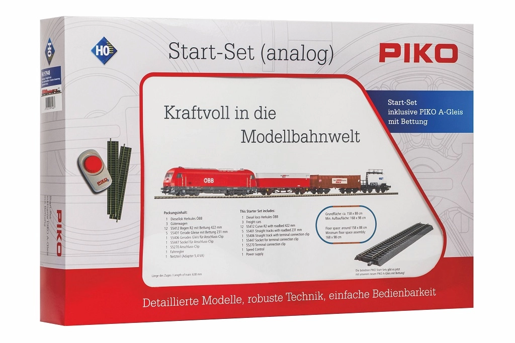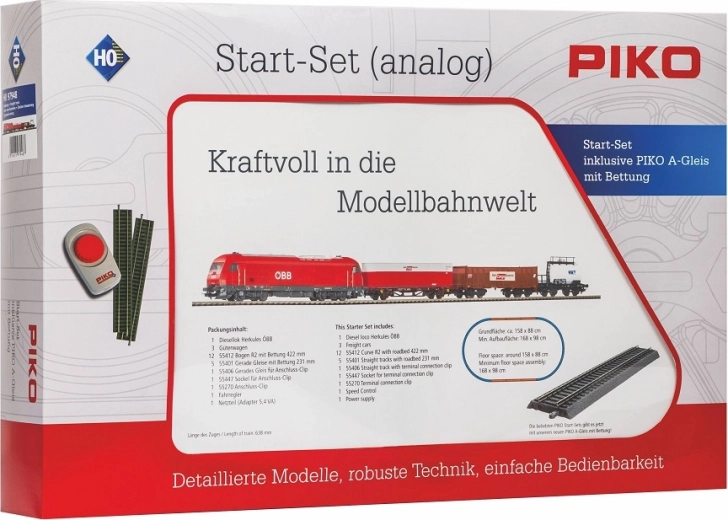 Kompletná modelárska sada od PIKO pre mierku H0, ktorá obsahuje všetko na okamžitú jazdu: dieselovú lokomotívu ÖBB Hercules, 3 nákladné vozne, ovál koľají PIKO A-Gleis s podložím, napájací zdroj a analógový regulátor. Vďaka jednoduchej montáži, spoľahlivému chodu a možnosti rozšírenia aj digitalizácie (NEM 652) je ideálna pre začiatočníkov aj pokročilých.