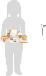 Tento krásne spracovaný detský čajový set umožňuje malým hostiteľom a hosteskám obsluhovať svojich hostí s rozkošnými hrnčekmi, kanvičkou a ďalšími doplnkami. Vysoká kvalita masívneho dreva zaisťuje robustnosť a dlhú životnosť hračiek, ktoré sú navrhnuté špeciálne pre detské ruky.