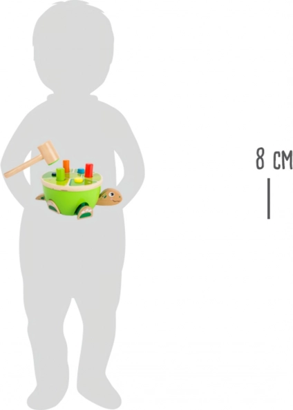 Farebné kolíky deti zatĺkajú do panciera korytnačky a zároveň trénujú úchop, presnosť aj koordináciu ruka–oko. Pop‑up efekt zaručí zábavu bez konca.