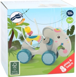 Hračka podporuje jemnú motoriku, koordináciu oko–ruka a zmyslové vnímanie. Veselé farby a priateľský dizajn motivujú k aktívnej hre a fantázii. Vďaka kompaktným rozmerom je slon ideálny aj na cesty.