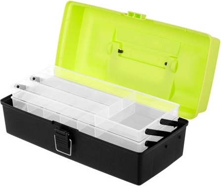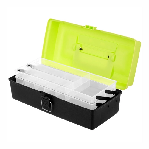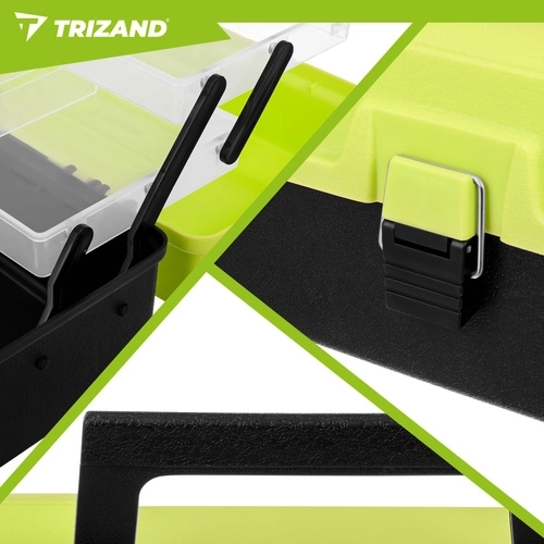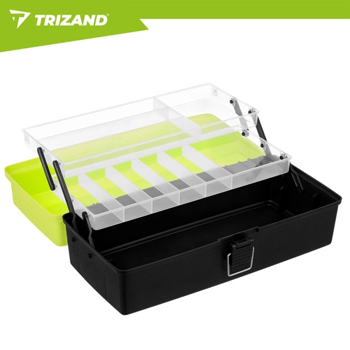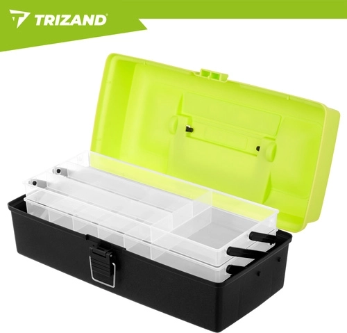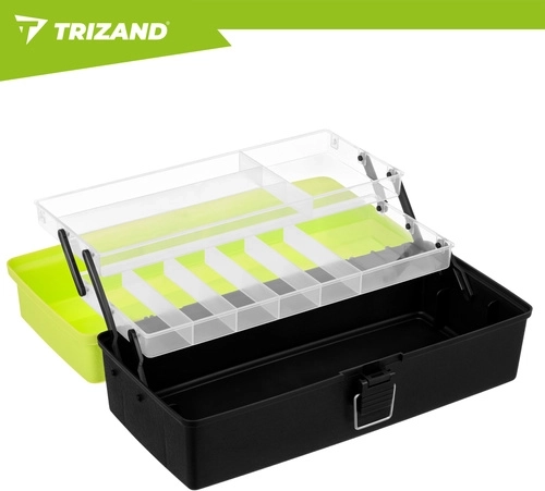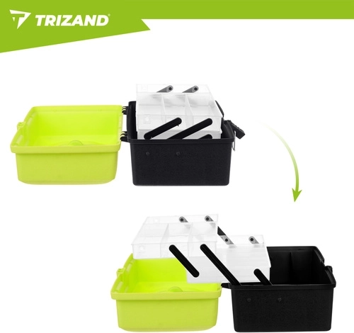 Rybársky box TRIZAND je ideálnou voľbou pre každého rybára, ktorý chce udržať nástrahy, háčiky, obratlíky a ďalšie nevyhnutnosti perfektne roztriedené. Hornú časť tvoria 2 výklopné police s 11 priehradkami na drobnosti, zatiaľ čo priestranná dolná komora pojme väčšie vybavenie. Solídne zacvakávacie zámky držia všetko bezpečne uzavreté počas prenášania.
