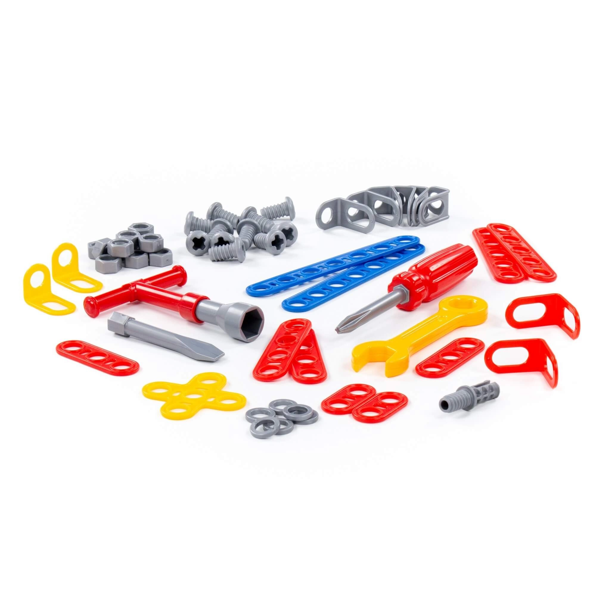 - Stavebné diely, skrutky a matice, detský skrutkovač, kľúč a ďalšie príslušenstvo