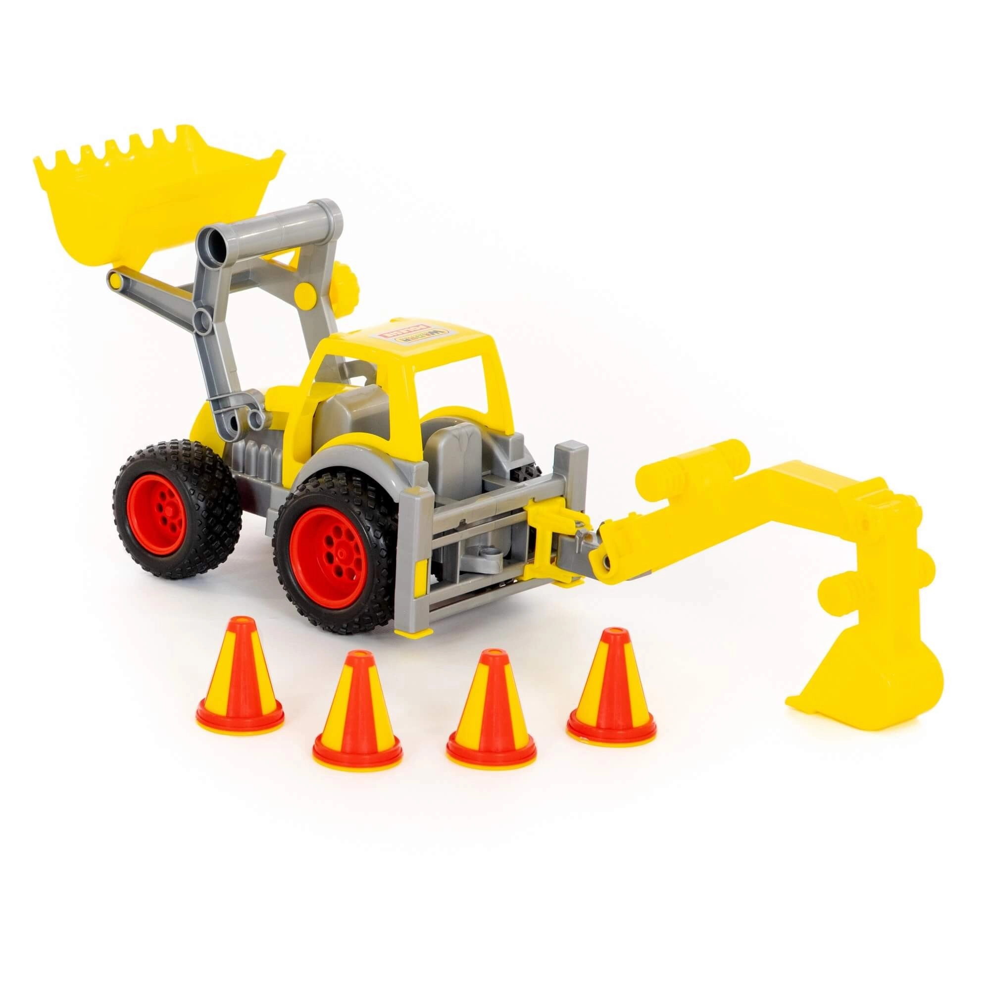 Žiarivo žlté prevedenie s výraznými kolesami a funkčnými ramenami motivuje deti k tvorivej hre a rozvíja motoriku aj predstavivosť.