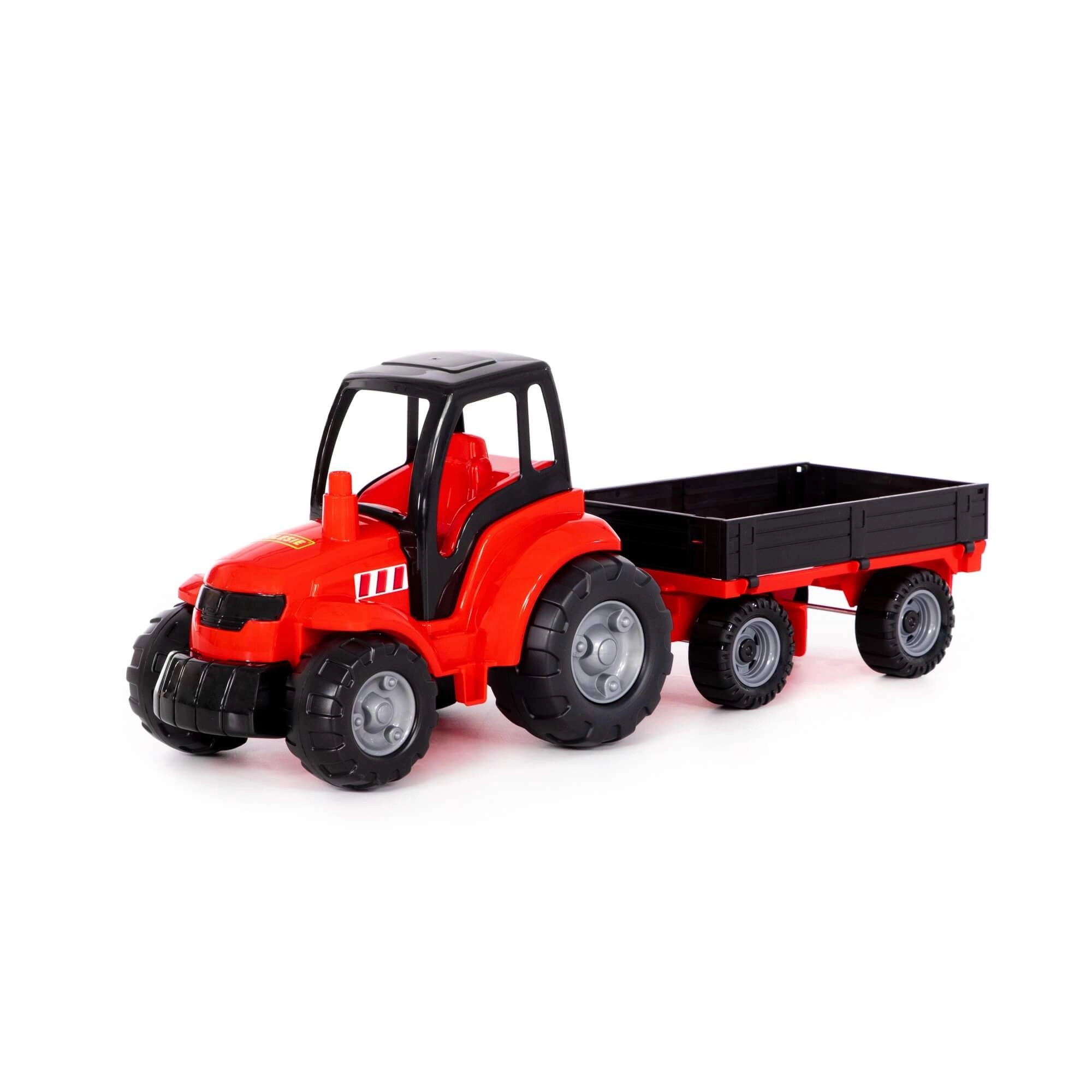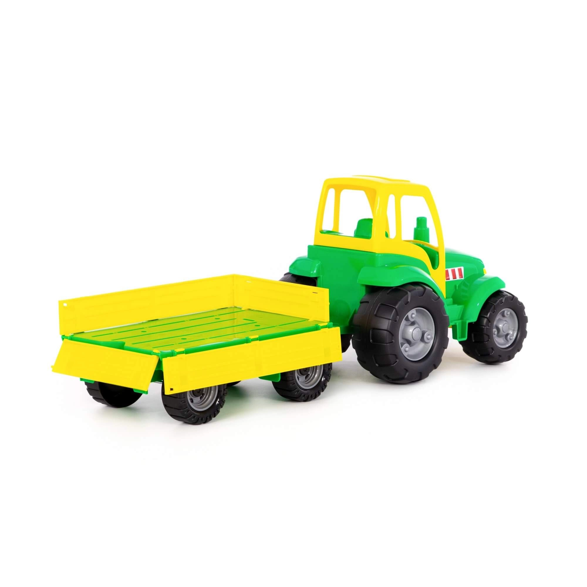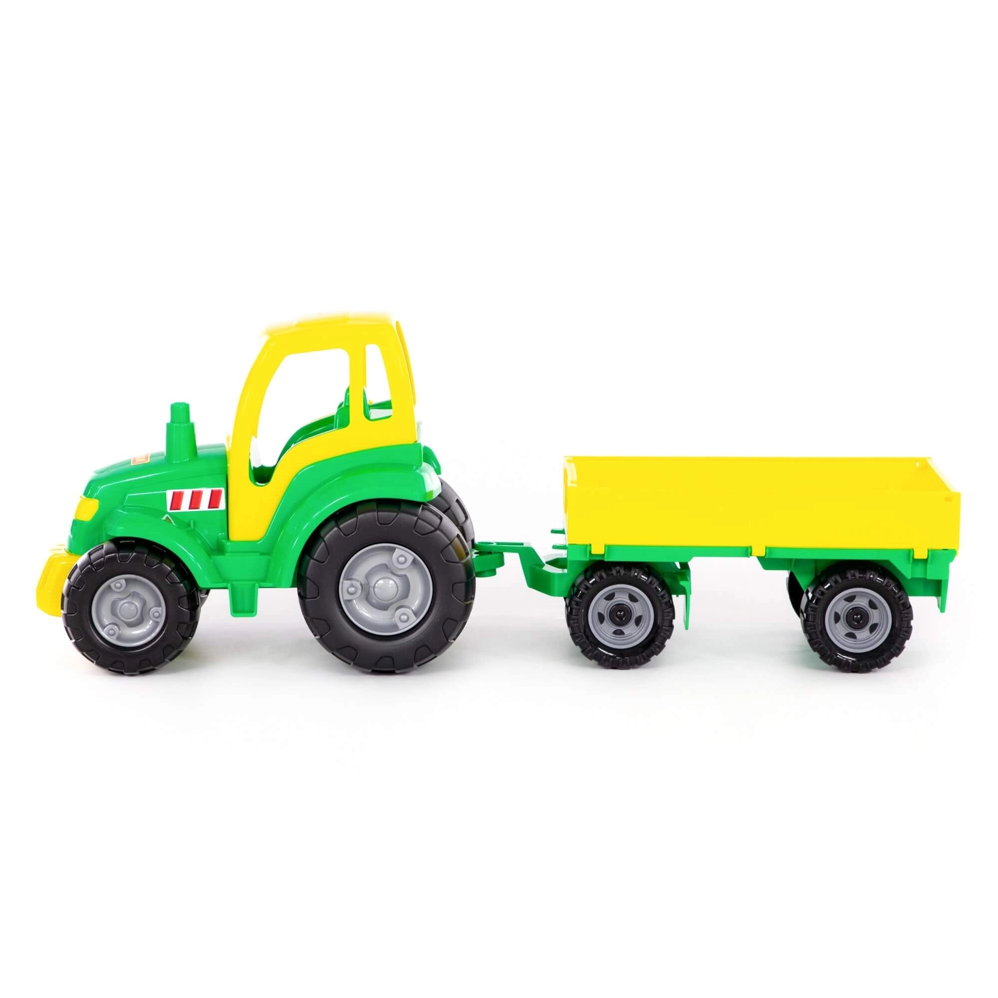 Objavte zábavu z farmárskeho života s týmto robustným plastovým traktorom s valníkom. Vďaka svetlým farbám, veľkým kolesám a jednoduchému ovládaniu si deti užijú množstvo herných scenárov – od nakládky a vykládky až po prevoz drobných pokladov.