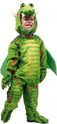 Tento zelený dračí kostým premení vaše dieťa na bájneho tvora so všetkým všudy – od kapucne s rohmi a očami až po látkové krídla. Mäkký plyš je príjemný na dotyk a neškriabe, takže je ideálny aj pre citlivú detskú pokožku. Praktické riešenie so suchým zipsom umožní rýchle obliekanie aj vyzliekanie.