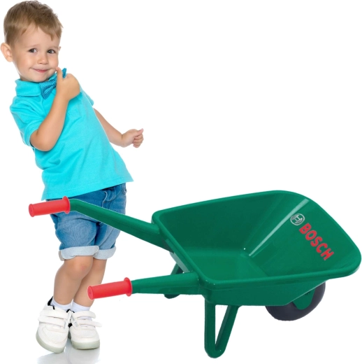 Detský fúrik BOSCH mini je navrhnutý pre malých pomocníkov, ktorí chcú napodobňovať dospelých pri práci v záhrade. Vyniká nízkou hmotnosťou, jednoduchou ovládateľnosťou a odolnou plastovou konštrukciou v zelenej farbe s logom BOSCH. Vďaka hlbokej korbe deti ľahko prevezú drobný náklad, hračky, jablká či záhradný materiál.