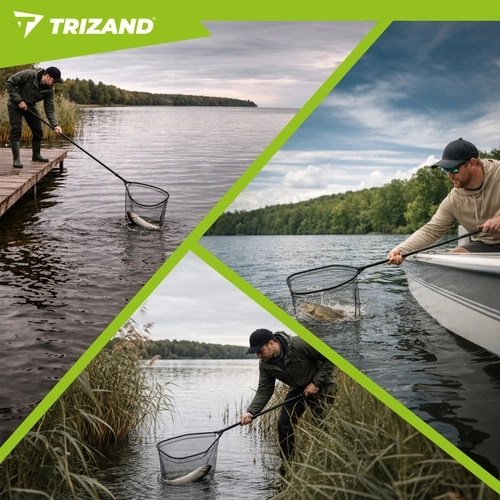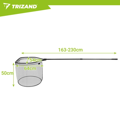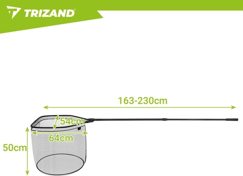 Praktický podberák TRIZAND s teleskopickou rukoväťou až do 230 cm uľahčí bezpečné podoberanie rýb bez poškodenia. Má hlbokú, rýchloschnúcu sieť, ľahký a pevný hliníkový rám, skladaciu konštrukciu na jednoduchý transport a protišmykovú rukoväť pre istý úchop v každom počasí.