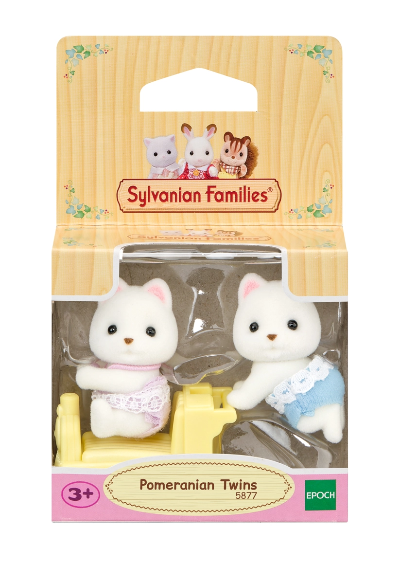 Roztomilé pomeranianske dvojčatá zo sveta Sylvanian Families prichádzajú v mäkkučkom semišovom prevedení a s vozíkom v tvare mašinky. Figúrky majú pohyblivú hlavičku, sú oblečené do farebných oblečkov s čipkou a lákajú ku kreatívnemu rozprávaniu príbehov. Ideálne na rozvoj predstavivosti a hry na role.