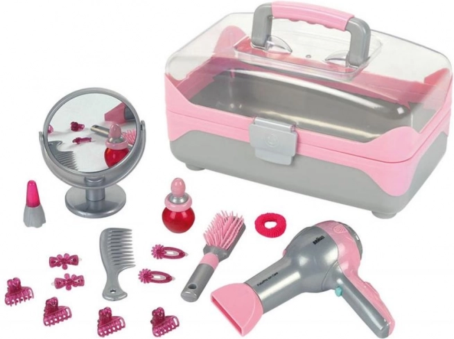Súprava je licencovaná značkou Braun a je zabalená v štýlovom kufríku s priehľadným vekom pre jednoduché skladovanie a poriadok. Kufrík je vyrobený z kvalitného plastu, má ergonomickú rukoväť a sponu, ktorá zabezpečuje jeho uzavretie. Všetky prístroje zodpovedajú skutočným produktom Braun FuturPro Ion-Care a fén je vybavený nástavcom na narovnávanie vlasov. Je to perfektná sada pre náročnú, profesionálnu malú kaderníčku.