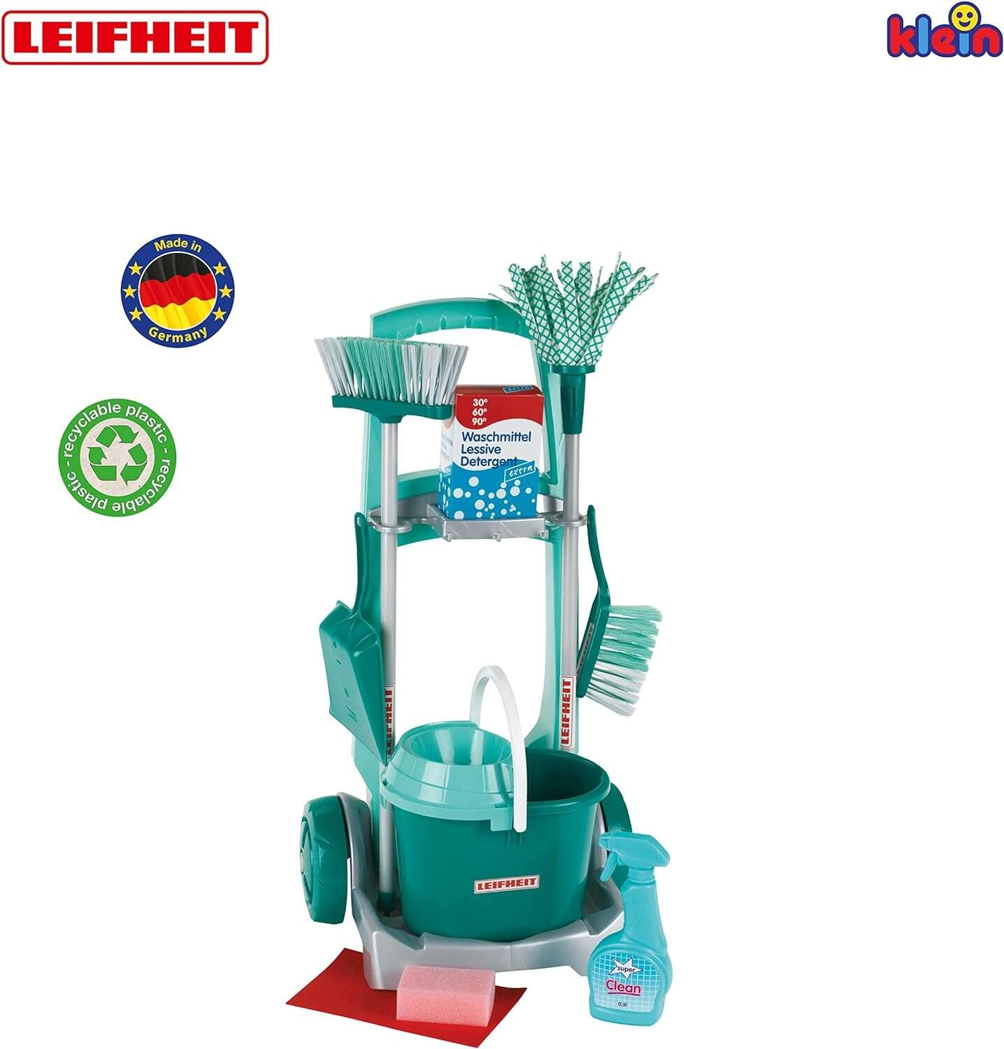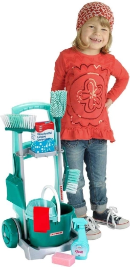 Štýlový detský upratovací vozík s licenciou LEIFHEIT od značky KLEIN prináša realistickú hru na domácnosť. Set obsahuje vozík na kolieskach, vedro so žmýkačom, mop, metlu, smetáčik s lopatkou a ďalšie doplnky na napodobňovanie skutočného upratovania. Vďaka ľahkým materiálom a premysleným držiakom je všetko ľahko ovládateľné a pripravené na hru. Skvelé na rozvoj motoriky, učenie zodpovednosti a kreatívny role-play od 3 rokov.