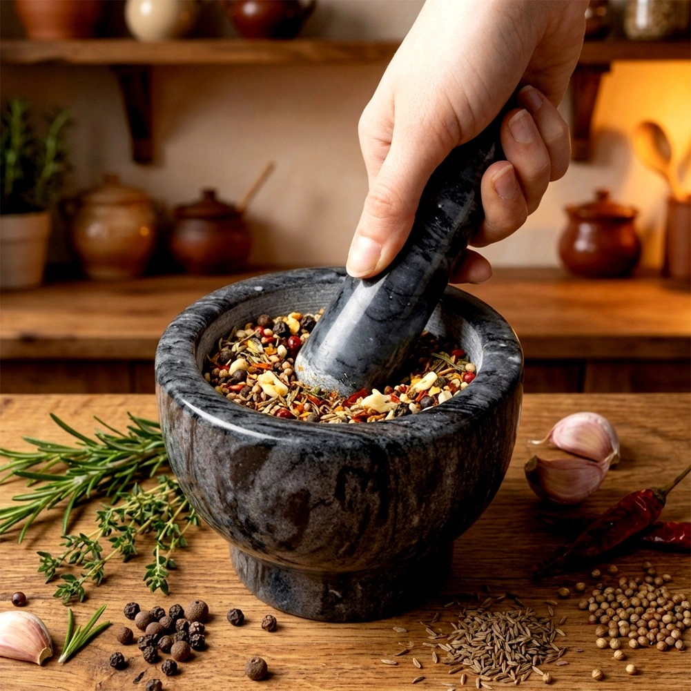 Objavte silu tradičného mletia s granitovým mažiarom s priemerom 13 cm. Prírodný kameň prirodzene zvyšuje arómu čerstvo podrvených korenín, cesnaku či byliniek a pomáha vytvárať pasty aj domáce pesto. Vnútorný, neleštený povrch misky a spodná časť tĺčika zabezpečujú vyššie trenie a tým aj rýchlejšie, rovnomerné drvenie.