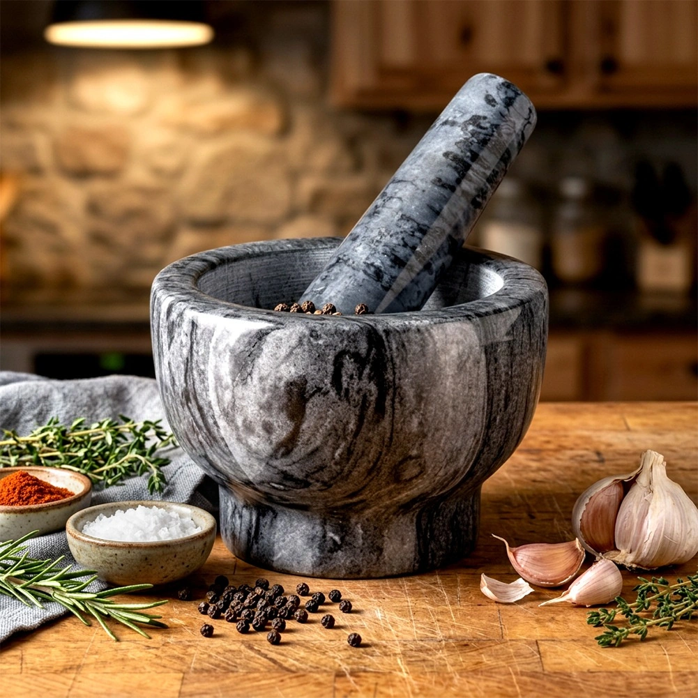 Masívne kamenné prevedenie odolá náročnému každodennému používaniu a zaručí stabilitu pri drvení.
