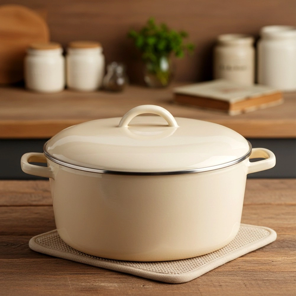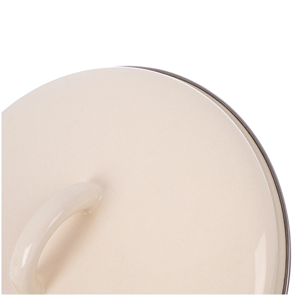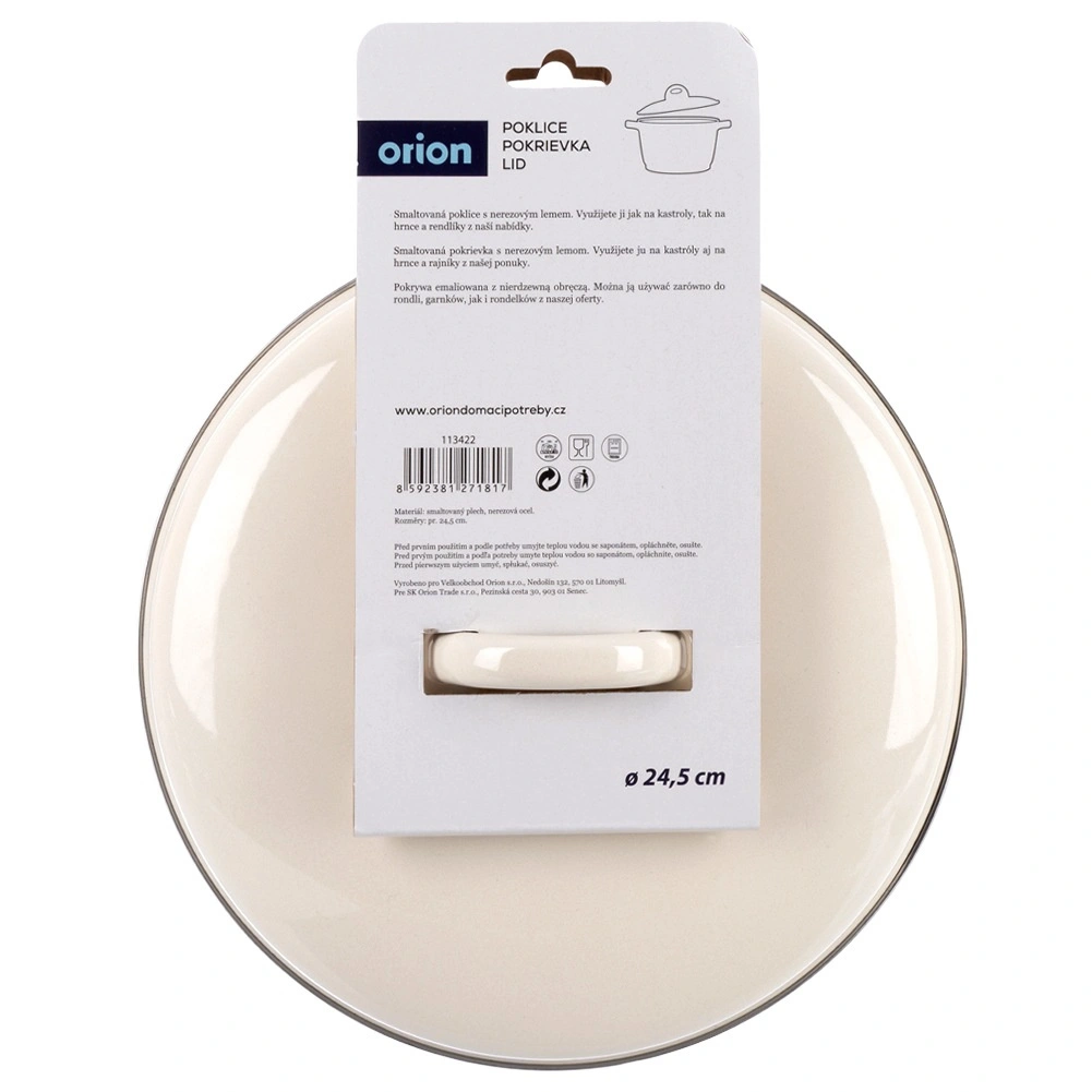 Univerzálna smaltovaná pokrievka v elegantnej krémovej farbe spoľahlivo pasuje na väčšinu riadu s priemerom 24,5 cm. Kovová obruč po obvode zabezpečuje pevné dosadnutie na okraj nádoby, čím pomáha lepšie utesniť paru, urýchliť varenie a znížiť spotrebu energie. Kvalitný smalt je hygienický, ľahko sa čistí a je šetrný aj pre osoby s citlivosťou či alergiami.