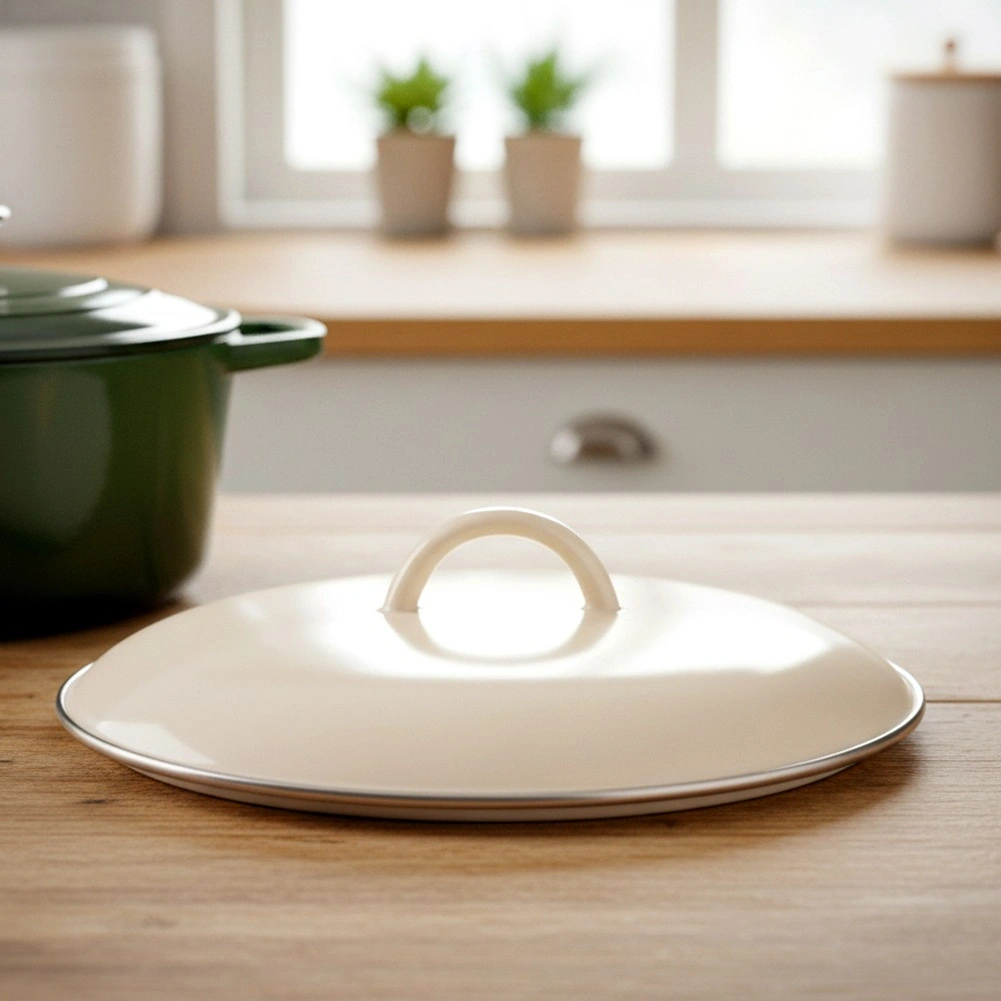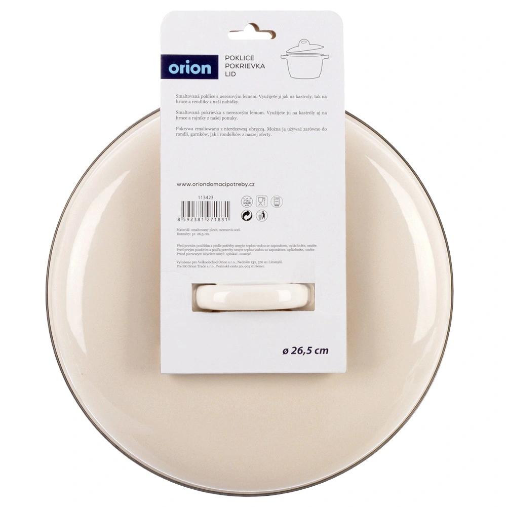 Praktické veko z kvalitnej smalťovanej ocele v elegantnej krémovej farbe je ideálnym doplnkom k riadu, ktorý nemá veko v sade. Vďaka pevnému prevedeniu účinne udržuje teplo a vlhkosť, skracuje dobu varenia a obmedzuje špliechanie vody a tuku po kuchyni.