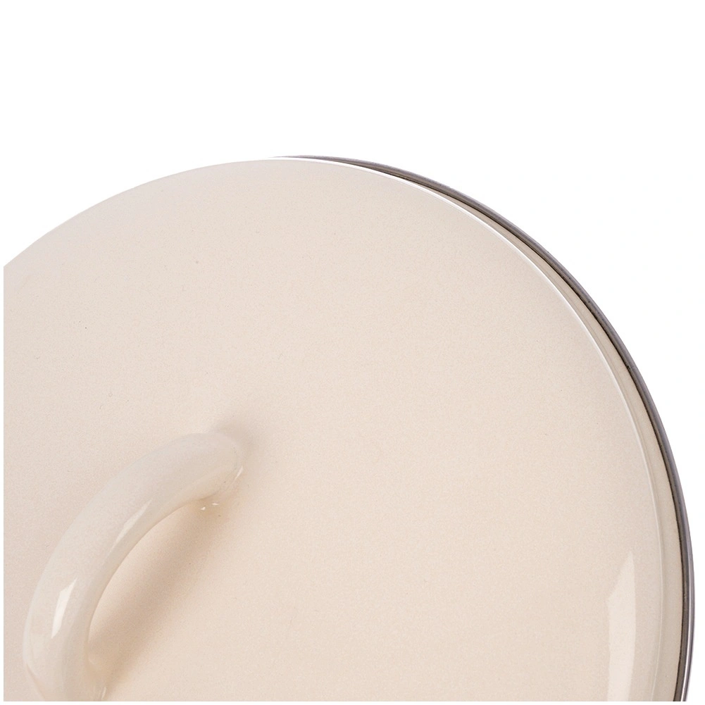 Univerzálna krémová pokrievka s priemerom 17 cm z kvalitnej smaltovanej ocele so strieborným oceľovým okrajom a pohodlným úchytom. Skvele sadne na hrnce, panvice aj rajnice zodpovedajúcej veľkosti, účinne zadržiava teplo a paru, skracuje dobu varenia a pomáha šetriť energiu. Odolná, ľahko sa čistí a je vhodná do umývačky aj na použitie v rúre.