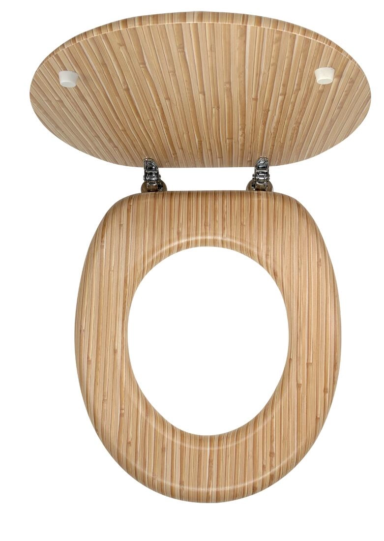 Elegantné WC sedadlo z bambusovej dyhy dodá vašej kúpeľni prírodný vzhľad a nadčasový štýl. Vďaka dyhovanej MDF je pevné a odolné, zatiaľ čo úchyty z chrómovanej mosadze zabezpečujú stabilitu a dlhú životnosť.