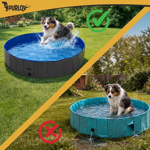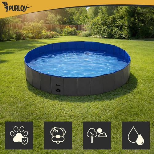 Skladací bazén pre psy PURLOV je ideálnou voľbou na ochladenie v horúcich dňoch, pravidelnú hygienu aj jemnú rehabilitáciu. Vďaka pevnej konštrukcii s vystuženými panelmi drží tvar, nedeformuje sa a zostáva stabilný aj pri živšej hre. Praktický odtokový ventil zaistí rýchle a čisté vypustenie vody bez zdvíhania bazéna.