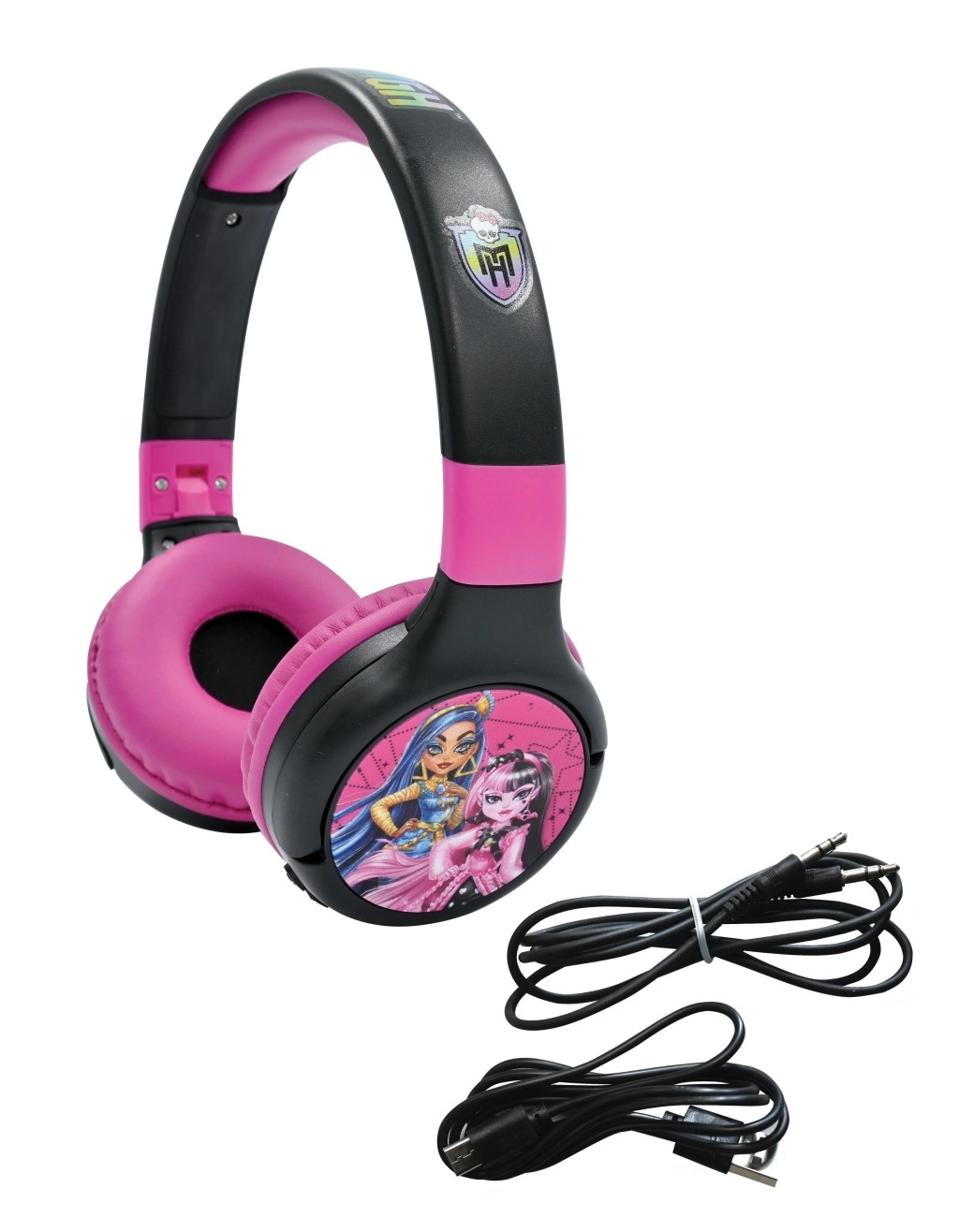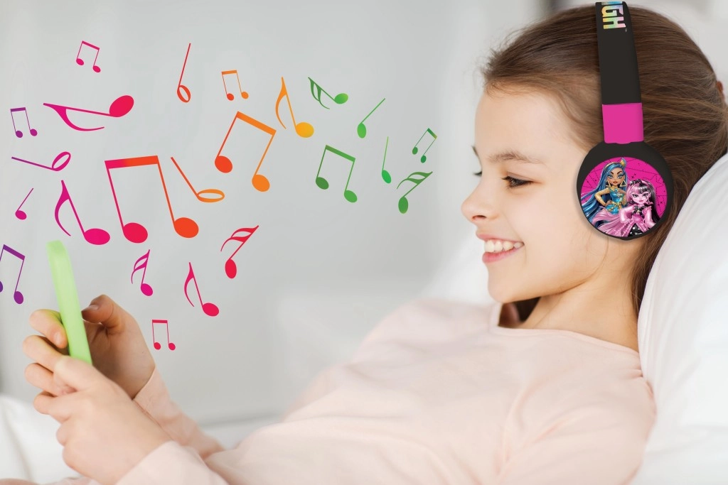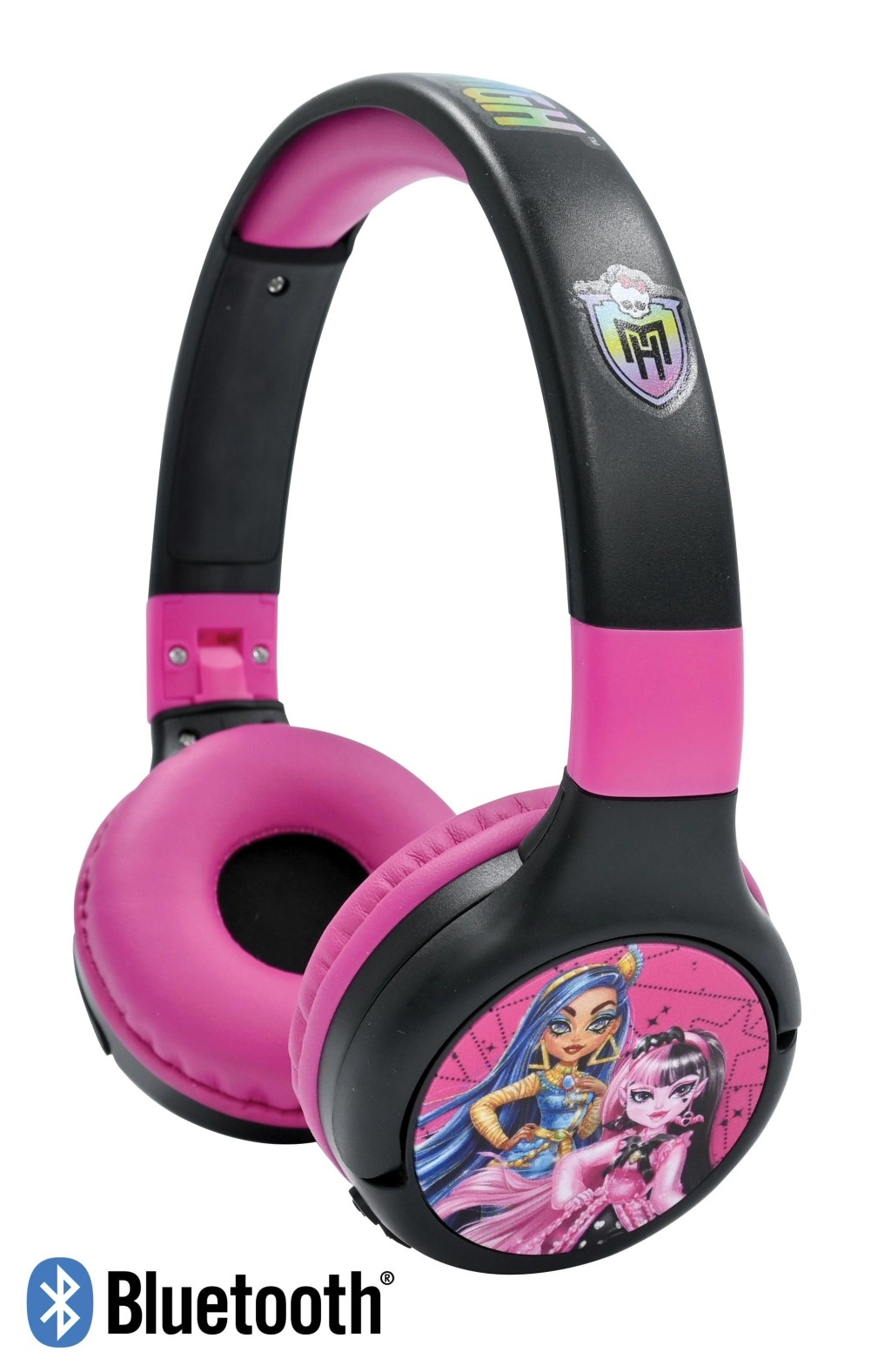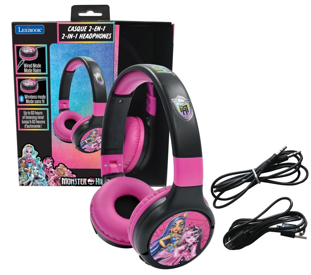 Urobte deťom radosť slúchadlami Lexibook MONSTER HIGH, ktoré spájajú bezpečnosť, komfort a zábavu. Vďaka bezdrôtovej technológii Bluetooth možno počúvať hudbu bez káblov, a keď je to potrebné, stačí pripojiť dodaný audio kábel. Skladacie prevedenie uľahčuje nosenie v batohu a výrazný ružovo-čierny dizajn s hrdinkami MONSTER HIGH pridáva štýl.