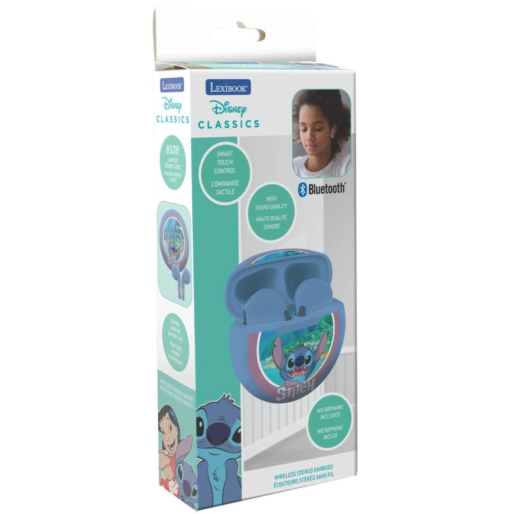 Užite si obľúbenú hudbu aj rozprávky s roztomilými bezdrôtovými slúchadlami do uší LEXIBOOK s motívom DISNEY STITCH. Vďaka Bluetooth pripojeniu počúvate bez káblov, dotykové ovládanie zjednodušuje prepínanie skladieb aj prijímanie hovorov a vstavaný mikrofón sa postará o čistú komunikáciu.