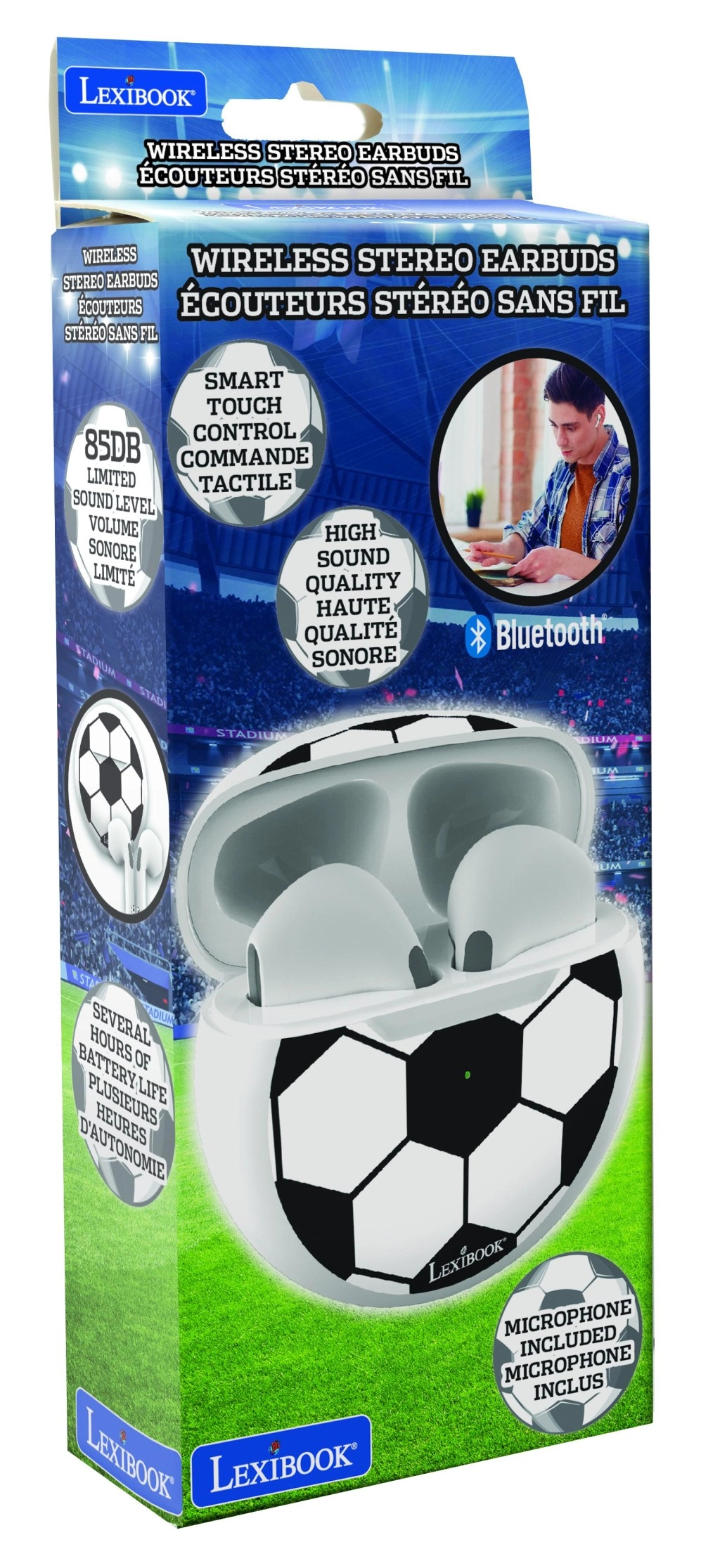 Bezdrôtové slúchadlá LEXIBOOK Futbal sú navrhnuté pre deti a mládež, ktoré milujú športový štýl a chcú počúvať hudbu, sledovať videá či volať bez káblov. Ergonomická in‑ear konštrukcia sedí pohodlne v uchu, zatiaľ čo vstavaný mikrofón a intuitívne dotykové ovládanie zabezpečujú jednoduché používanie každý deň.