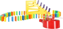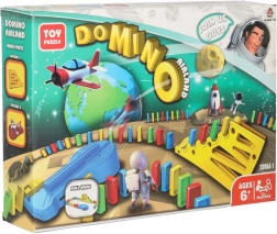 Obsah balenia: 126× kocky domina (4 farby), 2× lietadlo s vystreľovačom, diely tratí, 2× gulička, 1× figúrka, 12× podstavec pre domino, 52× vzdelávacie samolepky (písmená, čísla, matematické znaky).