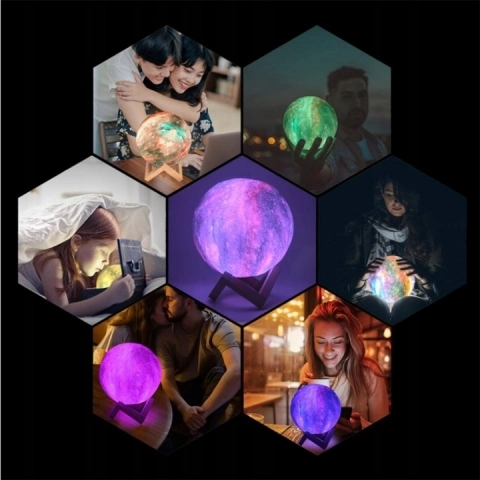 Dizajnová nočná lampa v tvare mesiaca prináša do interiéru magickú atmosféru. Vďaka technológii 3D tlače verne napodobňuje krátery a štruktúru povrchu. Ponúka 16 farieb svietenia, 4 úrovne jasu a diaľkové aj dotykové ovládanie. Je nabíjateľná cez USB a skvele sa hodí do spálne, detskej izby aj obývačky.
