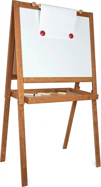 Obojstranná tabuľa Vilac je ideálnym nástrojom pre rozvoj detskej kreativity a vzdelávania. Jedna strana ponúka čiernu plochu pre kreslenie kriedou, zatiaľ čo druhá je magnetická a vhodná pre fixky. Vďaka robustnému drevenému rámu poskytuje stabilitu a bezpečnosť pri používaní. Tabuľa má tiež nastaviteľnú výšku, ktorá sa prispôsobí potrebám vašich detí až do 120 cm.