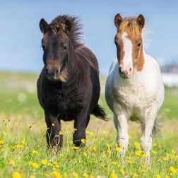 Detailné zobrazenie koní v rozkvitnutých lúkach a na pastvinách podporuje fantáziu a vytvára príjemný, upokojujúci zážitok zo skladania.
