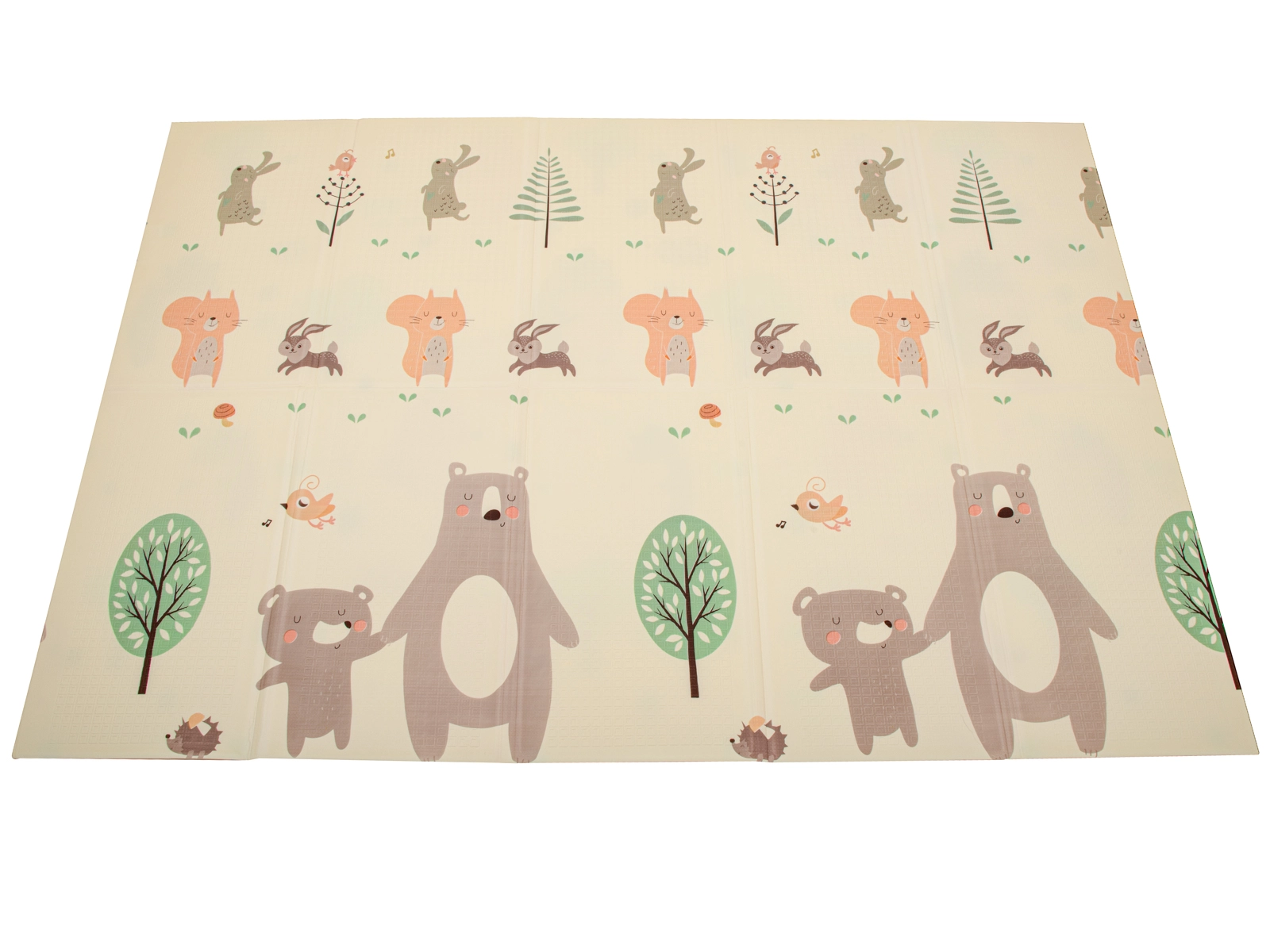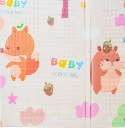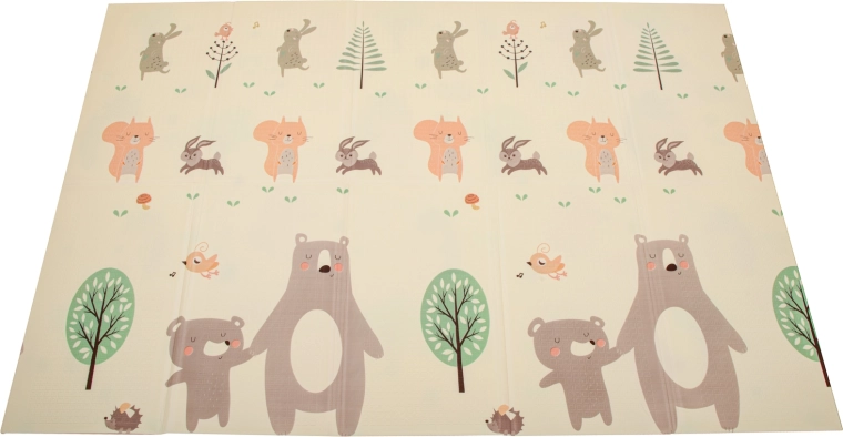 Podložka disponuje obojstranným potlačou: na jednej strane sú roztomilé zvieratká ako medvede a králičky, zatiaľ čo na druhej sa objavia ježkovia a líšky.
