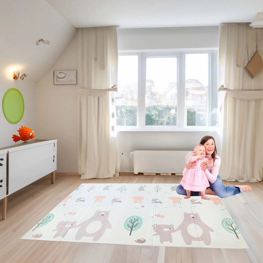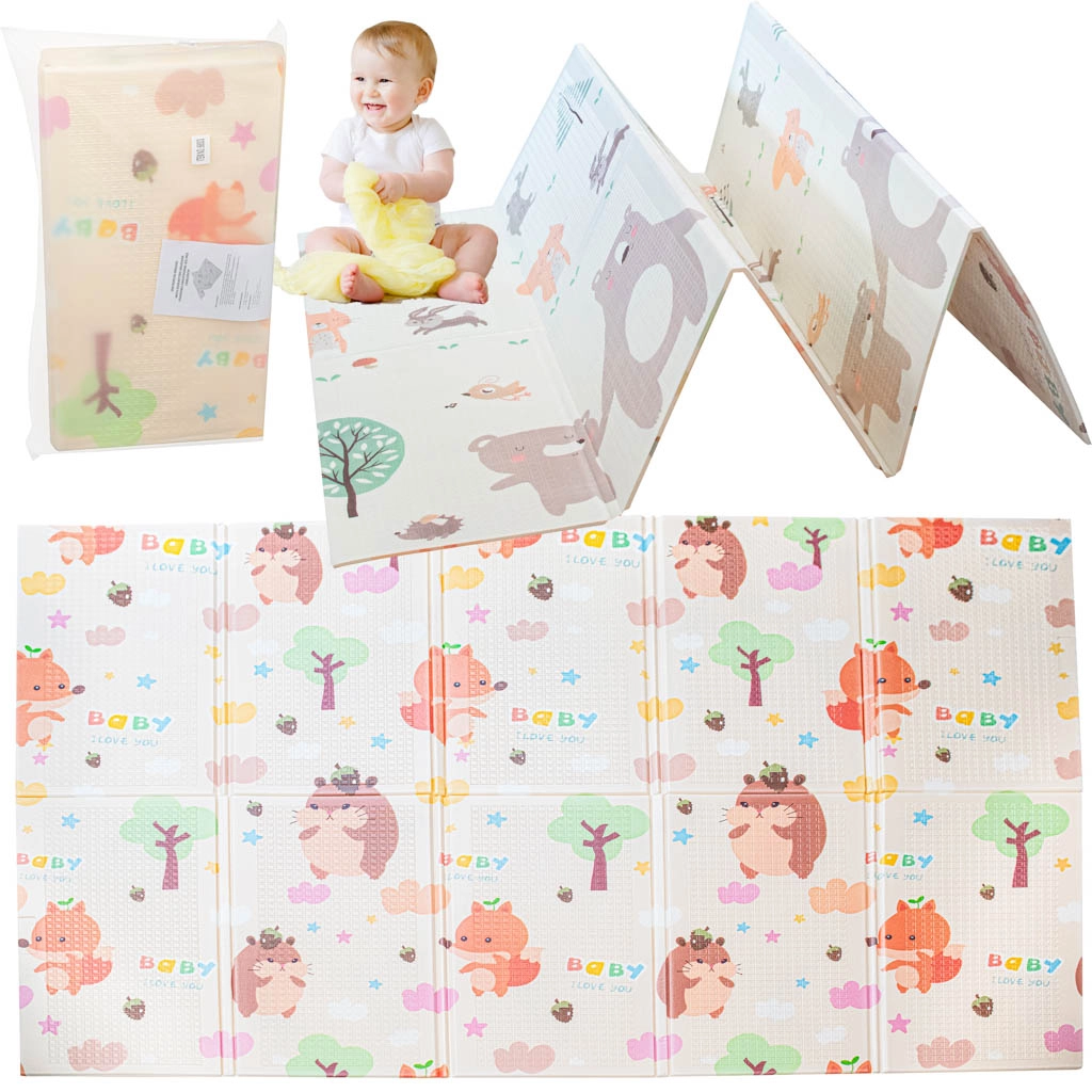 Ponúkame vám obojstrannú skladaciu penovú podložku ježka/medveďa, ktorá je vyrobená z bezpečného XPE materiálu, vynikajúca svojou mäkkosťou a odolnosťou. Podložka je vhodná pre deti už od prvých dní života, pričom jej mäkká textúra je ideálna pre lezenie a prvé kroky.