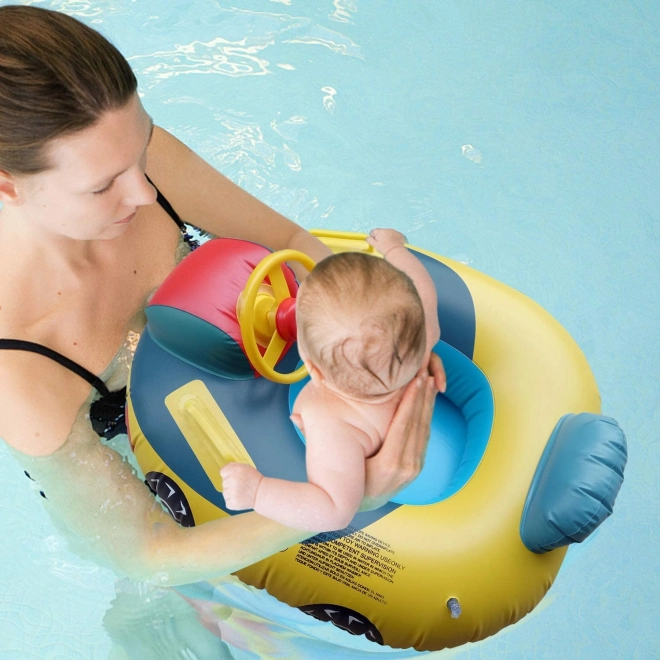 Detský nafukovací kruh v tvare auta ponúka odolnosť a bezpečie vďaka kvalitnému PVC materiálu. Je ideálnym pomocníkom pri zoznamovaní detí s vodným prostredím. S otočným volantom a klaksónom budú mať malí plavci ešte viac zábavy a vďaka špeciálnemu sedadlu s otvormi sa dieťa cíti bezpečne. Očarujúci farebný dizajn a tvar auta dodávajú výrobku atraktivitu pre deti.