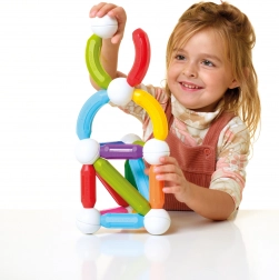 Magnetická stavebnica SmartMax Start Plus je ideálnou voľbou pre malých objaviteľov. Sada obsahuje 30 dielov, vrátane dlhých tyčí, stredných tyčí, zákrut a spojovacích gúľ, ktoré umožňujú zostavovanie jednoduchých i zložitých konštrukcií. Deti si môžu vyskúšať rôzne 2D a 3D tvary a stavby ako veže či mosty.