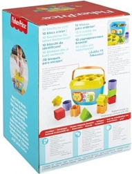 Desať výrazne farebných dielikov a veko s výrezmi pomáhajú deťom prirodzene rozlišovať tvary a farby pri každom pokuse o správne vloženie.
