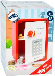 Zábavný a vzdelávací drevený sejf od značky small foot pomáha deťom objavovať svet peňazí a bezpečného ukladanía pokladov. Sejf sa otvára na kombináciu, má otočný ciferník so zvukom a stláčacie tlačidlá. Súčasťou je bohatá sada príslušenstva – euro bankovky, zlaté a strieborné mince aj drevené zlaté tehličky. Ideálne na hraníe rolí, rozvoj finančnej gramotnosti a jemnej motoriky.
