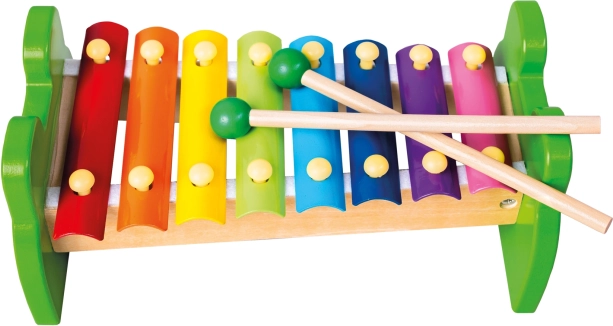 Vyrobený z kombinácie kovu a dreva, xylofón je nielen odolný, ale aj bezpečný pre detské hranie.