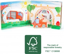 S drevenou knižkou Hasiči sa deti ponoria do akčného sveta hasičov. Kniha je vybavená drevenými figúrkami, ktoré inšpirujú k vymýšľaniu vlastných príbehov. Po uhasení ohňa si môžu deti vrátiť figúrky späť do knihy, čím sa učia základom poriadku a zodpovednosti.