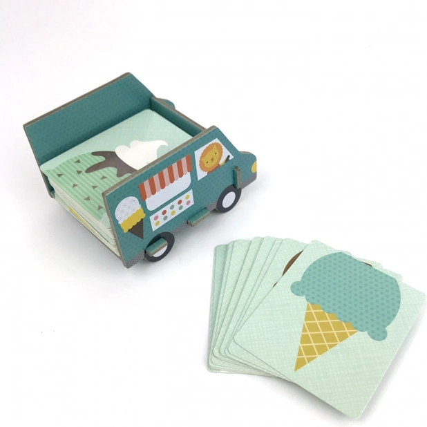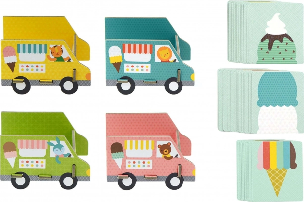 Maškrtníci, spojte sa! Chytrá a zábavná kartová hra, v ktorej skladáte zmrzlinové kornúty, zbierate kopčeky a pridávate posýpku. Obsahuje 52 ilustrovaných kariet a 4 zmrzlinové autá, je ideálna pre 2–4 hráčov, trvá približne 10 minút a je vyrobená z recyklovaných materiálov s rastlinnými atramentmi. Skvelá voľba pre deti od 4 do 8 rokov a spĺňa všetky bezpečnostné normy.