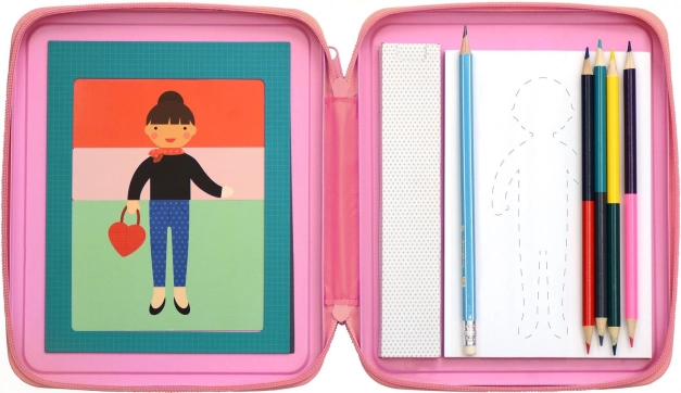 Petit Collage módna návrhárska sada podporuje detskú kreativitu a fantáziu. Je ideálna na cesty alebo na doma.
