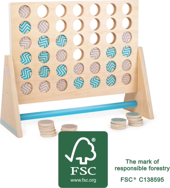 Hra je vyrobená zo 100% FSC certifikovaného dreva, ktoré zaisťuje ekologickú šetrnosť a vysokú odolnosť.