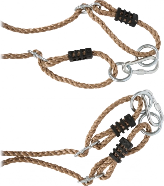 Nylonové laná s kovovými prieťahmi, krúžkami a bezpečnostnými karabínami zaistia rýchle, pevné a bezpečné zavesenie.