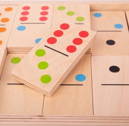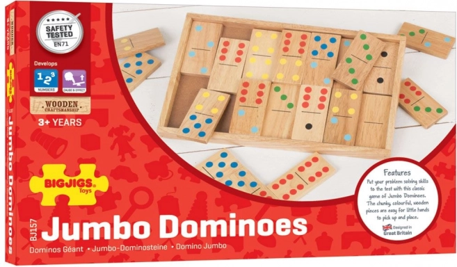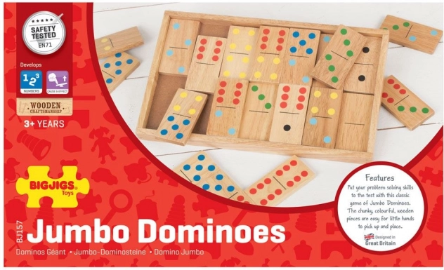 Jumbo drevené domino je perfektné dimenzované pre malé deti, ktoré si ľahko poradia so zdvíhaním a umiestňovaním dielikov. Hlavné prednosti tejto hry zahŕňajú: