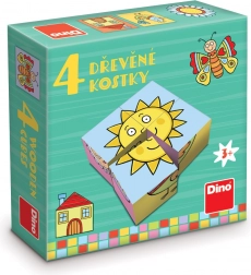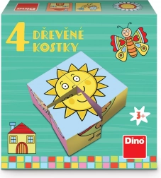 Drevené kocky DINO pre najmenších sú nadčasová 3D skladačka, s ktorou si deti užijú hodiny zábavy. Zo 4 kociek poskladajú až šesť rôznych obrázkov alebo z nich postavia stabilnú vežu. Hra s kockami prirodzene rozvíja koordináciu oka a ruky, logické myslenie a predstavivosť. Menšie deti môžu skladať podľa predlôh, staršie to zvládnu aj spamäti.
