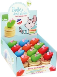 Tento roztomilý drevený box je ideálnym miestom na uschovanie vypadnutých mliečnych zúbkov. Vyrobené vo Francúzsku z vysoko kvalitného materiálu a zdobené zelenou myškou s ružovými uškami.