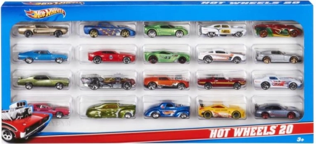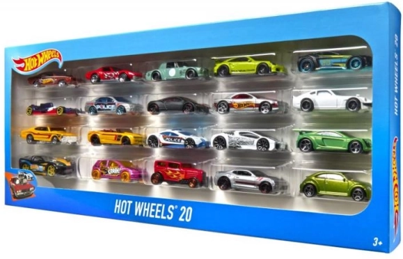 Súprava obsahuje 20 autíčok vo farebných odtieňoch, vrátane červenej, modrej, zelenej a fialovej. Každé autíčko môže mať závodné prúžky alebo iné vzory, ktoré očaria každého nadšenca.