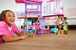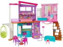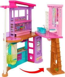 Prázdninový domček disponuje dvomi úrovňami a šiestimi hernými oblasťami ako je spálňa, kúpeľňa a obývacia izba. Ponúka moderný Barbie dizajn.