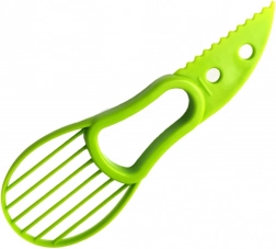 Plastová čepeľ hladko rozkrojí avokádo bez poškodenia dužiny. Ergonomický tvar zaisťuje istý úchop a presné rezy.