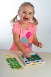 Táto mozaika je skvelou voľbou na prvé tvorenie. Deti pomocou pinzety vkladajú farebné guľôčky do podložky a vytvárajú jednoduché aj nápadité motívy. Aktivita podporuje trpezlivosť, koordináciu oko–ruka a rozvoj jemnej motoriky.