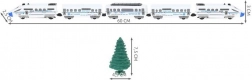 - Rozmery lokomotívy s vozmi (dĺžka / šírka / výška): 60 / 2,5 / 3 cm