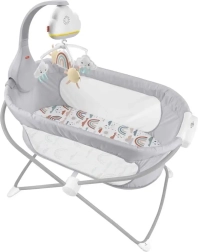 Prineste do detskej izby Fisher-Price Detský kolotoč s hudbou a nočným svetlom s motívom oblakov a jemnými farbami, ktorý vyžaruje moderný dizajn a harmóniu. Tento kolotoč neboli upokojujúci prístroj je perfektný pre malé deti, ktoré potrebujú pomoc pri zaspávaní.